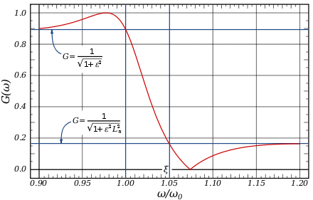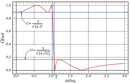 - In the limit of , and such that and , the filter becomes a Chebyshev type II filter with gain