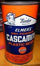 On May 11, 1857, with three employees and one product, Gail Borden founded the company that became Borden, Inc. In 1929, Borden purchased the Casein Company of America, the leading manufacturer of glues made from casein, a byproduct of milk. Borden introduced its first glue product, known as Casecorez Glue, in 1947.[3] Five years later, the company began producing resin adhesives for use in woodworking, such as Cascamite.[4]