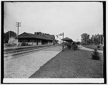 The following year, Hill Cottage Tavern opened where St. Charles Road and Cottage Hill Avenue presently intersect. In 1845, the community was officially named Cottage Hill when a post office was established. Four years later the Galena and Chicago Union Railroad was given right-of-way through Cottage Hill giving farmers easier access to Chicago.[7] The community changed its name to Elmhurst in 1869. In 1871, Elmhurst University was organized and currently has 3,500 undergraduates and about 300 graduate students. Elmhurst was incorporated as a village in 1882, with a population between 723 and 1,050, and legal boundaries of St. Charles Road to North Avenue, and one half mile west and one quarter mile east of York Street. Elmhurst Memorial Hospital was founded in 1926 as the first hospital in DuPage County.[7]