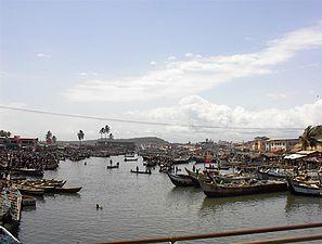 Elmina, also known as Edina by the local Fante, is a town and the capital of the Komenda/Edina/Eguafo/Abirem District on the south coast of Ghana in the Central Region, situated on a bay on the Atlantic Ocean, 12 kilometres (7 1&fras1;2 miles) west of Cape Coast. Elmina was the first European settlement in West Africa and it has a population of 33,576 people.[1]