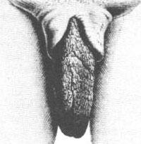 Elongated labia (also known as Sinus pudoris or macronympha[1] and albeit nonmedically, as khoikhoi apron or hottentot apron), are a feature of certain Khoikhoi people, whose female members develop relatively elongated labia minora, hanging up to four inches outside their vulva when they are standing in an upright position. The "apron" designation was apparently gained from the tendency of early European descriptions to misidentify the pair of labia as a single, wide organ, which they called, in French, a tablier, or "apron".[2]