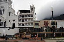 On January 28, 1912, a group of pro-Catholic soldiers whose motto was "Muerte al indio Alfaro" (death to the Indian Alfaro), supported by a mob, broke into the prison where Alfaro and his colleagues were detained[2] and dragged them along the cobbled streets of the city center. They were all dead when the horde arrived at the esplanade of El Ejido (city gardens)[5] in the northern outskirts of town. The crowd finally burnt the corpses in the area where the present day park of El Ejido is located.[6] (A monument was erected in the 1960s at the site.) Days later, Alfaro's remains were buried in Quito, in secret. They were transported to Guayaquil and deposited in a mausoleum there at some time in the 1940s. On the initiative of President Rafael Correa (in office from 2007 – 2017), some of the ashes of Eloy Alfaro were exhumed and re-interred with honors in the city of Montecristi, seat of the 2008 National Constitutional Convention.
