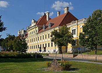 Eltz Manor (Croatian: Dvorac Eltz, German: Schloss Eltz) is a Baroque palace in Vukovar, Croatia. The 18th-century manor is the location of the Vukovar City Museum. The manor, as it previously appeared, is depicted on the reverse of the Croatian 20 kuna banknote, issued in 1993 and 2001.[1][2] The palace was destroyed in 1991 in the Croatian War of Independence. However, after four years of restorations, it was completely restored to its pre-war appearance in October 2011.[3]