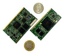 One common design style uses a small system module, perhaps the size of a business card, holding high density BGA chips such as an ARM-based system-on-a-chip processor and peripherals, external flash memory for storage, and DRAM for runtime memory. The module vendor will usually provide boot software and make sure there is a selection of operating systems, usually including Linux and some real-time choices. These modules can be manufactured in high volume, by organizations familiar with their specialized testing issues, and combined with much lower volume custom mainboards with application-specific external peripherals.