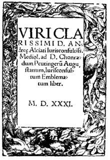 Usually known simply as the Emblemata, the first emblem book appeared in Augsburg (Germany) in 1531 under the title Viri Clarissimi D. Andreae Alciati Iurisconsultiss. Mediol. Ad D. Chonradum Peutingerum Augustanum, Iurisconsultum Emblematum Liber. Produced by the publisher Heinrich Steyner, the unauthorized first print edition was compiled from a manuscript of Latin poems which the Italian jurist Andrea Alciato had dedicated to his friend Conrad Peutinger and circulated to his acquaintances. The 1531 edition was soon followed by a 1534 edition authorized by Alciato: published in Paris by Christian Wechel, this appeared under the title Andreae Alciati Emblematum Libellus ("Andrea Alciato's Little Book of Emblems"). The word "emblemata" is simply the plural of the Greek word "emblema", meaning a piece of inlay or mosaic, or an ornament: in his preface to Peutinger, Alciato describes his emblems as a learned recreation, a pastime for humanists steeped in classical culture.