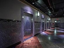 Capital improvements were made to the Empire State Building during the early to mid-1990s at a cost of $55 million.[211] These improvements entailed replacing alarm systems, elevators, windows, and air conditioning; making the observation deck compliant with the Americans with Disabilities Act of 1990 (ADA); and refurbishing the limestone facade.[212] The observatory renovation was added after disability rights groups and the United States Department of Justice filed a lawsuit against the building in 1992, in what was the first lawsuit filed by an organization under the new law.[213] A settlement was reached in 1994, in which the Empire State Building Associates agreed to add ADA-compliant elements, such as new elevators, ramps, and automatic doors, during its ongoing renovation.[214]
