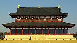 - 710 (Wadō 3, 3rd month): Empress Genmei established her official residence in Nara.[6] In the last years of the Mommu's reign, the extensive preparations for this projected move had begun; but the work could not be completed before the late-emperor's death.[11] Shortly after the nengō was changed to Wadō, an Imperial Rescript was issued concerning the establishment of a new capital at the Heijō-kyō at Nara in Yamato Province. It had been customary since ancient times for the capital to be moved with the beginning of each new reign. However, Emperor Mommu decided not to move the capital, preferring instead to stay at the Fujiwara Palace which had been established by Empress Jitō.[13] Empress Genmei's palace was named Nara-no-miya.[5]