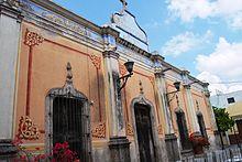The Astrónimo Anglo Anguiano Public Library was built between 1840 and 1845 by the Church to house a parochial school for girls. The walls are flat with some decorative elements of sandstone. However, its current decoration consists mostly of murals as well as a number of the buildings original oil paintings. The walls still contain phrases written on them when it was a school, with positive messages about women.[1][3]