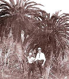 A basal offset of the main stems was removed and sent to Kew Gardens in 1899.[2] Three basal offsets were collected by Wood's deputy, James Wylie, in 1903 and planted in the Durban Botanic Gardens.[9] One specimen was received at the National Botanic Gardens of Ireland in Glasnevin in 1905[10] where the register records it as "Encephalartos way of E. Alten[steinii]" costing 1 guinea from Sander & Sons.[11] In a 1907 expedition, Wylie collected two of the larger stems and noted that of the remaining two, one of them (the largest of the four original stems) was badly mutilated and he did not expect it to survive.[9] By 1912 there was only one 3 metres (9.8 ft) tall trunk left in the wild, and in 1916, the Forestry Department arranged to have it removed and sent to the Government Botanist in Pretoria.[9] It is thought that this trunk subsequently died in 1964.[9]