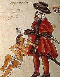 With the ousting of Christopher Columbus in 1500, the Spanish Crown had him replaced with Francisco de Bobadilla.[2] Bobadilla was succeeded by a royal governor, Fray Nicolás de Ovando, who established the formal encomienda system.[3] In many cases natives were forced to do hard labor and subjected to extreme punishment and death if they resisted.[4] However, Queen Isabella I of Castile forbade slavery of the native population and deemed the indigenous to be "free vassals of the crown".[5] Various versions of the Laws of the Indies from 1512 onwards attempted to regulate the interactions between the settlers and natives. Both natives and Spaniards appealed to the Real Audiencias for relief under the encomienda system.