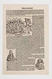 In 1493 Nuremberg Chronicle was produced, containing hundreds of illustrations, of historical figures, events and geographical places. Written as an encyclopedic chronicle, it remains one of the best-documented early printed books—an incunabulum—and one of the first to successfully integrate illustrations and text. Illustrations depicted many never before illustrated major cities in Europe and the Near East.[30] 645 original woodcuts were used for the illustrations.[31]