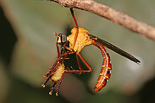Robber fly (Asilidae), showing tarsomeres and pretarsi with ungues, pulvilli and empodia