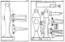 An endoscope is an illuminated optical, typically slender and tubular instrument (a type of borescope) used to look deep into the body and used in procedures called an endoscopy. Endoscopes use tubes which are only a few millimeters thick to transfer illumination in one direction and high-resolution images in real time in the other direction, resulting in minimally invasive surgeries.[1] "Endo" is Greek for "within" while "scope" comes from the Greek word "skopos" meaning to target or look out. It is used to examine the internal organs like the throat or esophagus. Specialized instruments are named after their target organ. Examples include the cystoscope (bladder), nephroscope (kidney), bronchoscope (bronchus), arthroscope (joints) and colonoscope (colon), and laparoscope (abdomen or pelvis).[2] They can be used to examine visually and diagnose, or assist in surgery such as an arthroscopy.