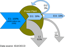 World Electricity generation 2008 | Gross output 39% | Net output 33%[9] |