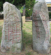 The England runestones (Swedish: Englandsstenarna) is a group of about 30 runestones in Northern Europe which refer to Viking Age voyages to England.[1] They constitute one of the largest groups of runestones that mention voyages to other countries, and they are comparable in number only to the approximately 30 Greece Runestones[2] and the 26 Ingvar Runestones, of which the latter refer to a Viking expedition to the Middle East. They were engraved in Old Norse with the Younger Futhark.