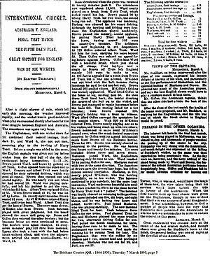 Five Test matches were played. England won 3-2 after Australia had recovered from 0-2 down to 2-2 with the final match a true decider. The first Test, won by England, was the first of only three Tests in history to be won by a side forced to follow on.
