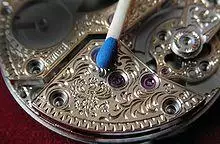 At an engravers workshop: Miniature engraving on a Louis George watch movement: Smallest engraving of the royal Prussian eagle on a watch movement. It takes about 100 passes to create the figure.