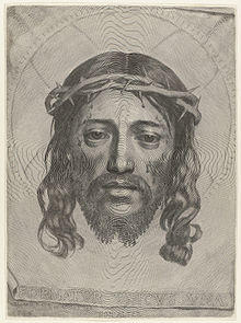 Sudarium of Saint Veronica by Claude Mellan (1649), a famous showpiece where the image is formed by a single continuous line, starting on the tip of Christ's nose.