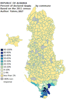 - ^ "Ethnic Greek minority groups had encouraged their members to boycott the census, affecting measurements of the Greek ethnic minority and membership in the Greek Orthodox Church."[31]