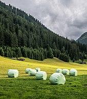 Haylage sometimes refers to high dry matter silage of around 40% to 60%, typically made from hay. Horse haylage is usually 60% to 70% dry matter, made in small bales or larger bales.[6]