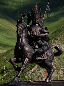 The Epic of King Gesar[a] (/ˈɡɛzər, ˈɡɛs-/), also spelled Geser (especially in Mongolian contexts) or Kesar (/ˈkɛzər, ˈkɛs-/), is an epic cycle, of Tibet and greater Central Asia, believed to date from the 12th century, that relates the heroic deeds of the culture hero Gesar,[1] the fearless lord of the legendary kingdom of Ling (Wylie: gling). It is recorded variously in poetry and prose, through oral poetry performance, [2] it is sung widely throughout Central Asia and North East of South Asia. Its classic version is to be found in central Tibet.[3] Some 100 bards of this epic (Wylie: sgrung, "tale")[4] are still active today in the Gesar belt of China.[5] Tibetan, Mongolian, Buryat, Balti, Ladakhi and Monguor singers maintain the oral tradition and the epic has attracted intense scholarly curiosity as one of the few oral epic traditions to survive as a performing art. Besides stories conserved by such Chinese minorities as the Bai, Naxi, the Pumi, Lisu, Yugur[6] and Salar,[7] versions of the epic are also recorded among the Balti of Baltistan, the Burusho people of Hunza and Gilgit[6] and the Kalmyk and Ladakhi peoples,[8][9] in Sikkim, Bhutan, Nepal, and among various Tibeto-Burmese, Turkic, and Tungus tribes.[10] The first printed version was a Mongolian text published in Beijing in 1716.[11]