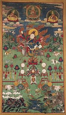 Orgyen Tobgyal explained that in the Nyingma perspective, "the real nature of the manifestation we know as Ling Gesar is actually that of Guru Rinpoche himself appearing in the form of a drala" (Wylie: dgra bla, "protective warrior spirit").[53]