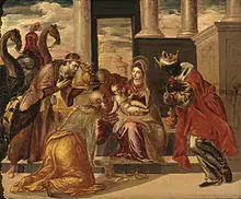 In the Latin-speaking West, the holiday emphasized the visit of the magi. The magi represented the non-Jewish peoples of the world, so this was considered a "revelation to the gentiles."[31] In this event, Christian writers also inferred a revelation to the Children of Israel. John Chrysostom identified the significance of the meeting between the magi and Herod's court: "The star had been hidden from them so that, on finding themselves without their guide, they would have no alternative but to consult the Jews. In this way the birth of Jesus would be made known to all."[32]