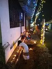 Popular Epiphany customs include Epiphany singing, chalking the door, having one's house blessed, consuming Three Kings Cake, winter swimming, as well as attending church services.[14] It is customary for Christians in many localities to remove their Christmas decorations on Epiphany Eve (Twelfth Night),[15] although those in other Christian countries historically remove them on Candlemas, the conclusion of Epiphanytide.[16][17] According to the first tradition, those who fail to remember to remove their Christmas decorations on Epiphany Eve must leave them untouched until Candlemas, the second opportunity to remove them; failure to observe this custom is considered inauspicious.[18][19]