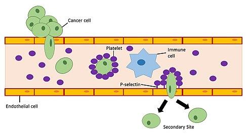 - ^ a b c Erpenbeck L, Schön MP (April 2010). "Deadly allies: the fatal interplay between platelets and metastasizing cancer cells". Blood. 115 (17): 3427–36. doi:10.1182/blood-2009-10-247296. PMC 2867258. PMID 20194899.