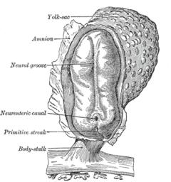After the initial stage of embryogenesis, the implantation of the embryo and the initiation of placenta formation are associated with EMT. The trophoectoderm cells undergo EMT to facilitate the invasion of endometrium and appropriate placenta placement, thus enabling nutrient and gas exchange to the embryo. Later in embryogenesis, during gastrulation, EMT allows the cells to ingress in a specific area of the embryo – the primitive streak in amniotes, and the ventral furrow in Drosophila. The cells in this tissue express E-cadherin and apical-basal polarity.[33] Since gastrulation is a very rapid process, E-cadherin is repressed transcriptionally by Twist and SNAI1 (commonly called Snail), and at the protein level by P38 interacting protein. The primitive streak, through invagination, further generates mesoendoderm, which separates to form a mesoderm and an endoderm, again through EMT. Mesenchymal cells from the primitive streak participate also in the formation of many epithelial mesodermal organs, such as notochord as well as somites, through the reverse of EMT, i.e. mesenchymal–epithelial transition. Amphioxus forms an epithelial neural tube and dorsal notochord but does not have the EMT potential of the primitive streak. In higher chordates, the mesenchyme originates out of the primitive streak migrates anteriorly to form the somites and participate with neural crest mesenchyme in formation of the heart mesoderm.