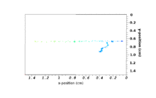 Otherwise called a knock-on electron, the term "delta ray" is also used in high energy physics to describe single electrons in particle accelerators that are exhibiting characteristic deceleration. In a bubble chamber, electrons will lose their energy more quickly than other particles through Bremsstrahlung and will create a spiral track due to their small mass and the magnetic field. The Bremsstrahlung rate is proportional to the square of the acceleration of the electron.