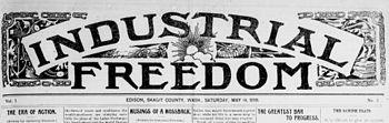 The colony flourished for a few years, building two large apartments, a barn, a dining room and kitchen, a school house, a public hall, a store room, a printing office, a saw mill, a root house, a blacksmith and copper shop, an apiary, a bakery, a cereal and coffee house, and a milk house. Its population fluctuated, but was about 100 by the spring of 1903, when only the "die hards" remained.[16] Harry Ault, who would later play a role in the Seattle general strike of 1919 as editor as the Seattle Union Record, arrived with his family at age 14 in April 1898 and began to learn journalism and printing by working on Industrial Freedom. He eventually became its editor, until the publication folded in December 1902. He also started Young Socialist in 1899 for the colony's children.[17]