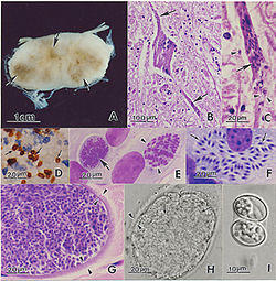 - ^ Sofaly, C. D.; Reed, S. M.; Gordon, J. C.; Dubey, J. P.; Oglesbee, M. J.; Njoku, C. J.; Grover, D. L.; Saville, W. J. A. (December 2002). "Experimental Induction of Equine Protozoan Myeloencephalitis (EPM) in the Horse: Effect of Sarcocystis neurona Sporocyst Inoculation Dose on the Development of Clinical Neurologic Disease". The Journal of Parasitology. 88 (6): 1164–70. doi:10.2307/3285489. JSTOR 3285489. PMID 12537112.