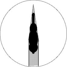 The horse has a "visual streak", or an area within the retina, linear in shape, with a high concentration of ganglion cells (up to 6100 cells/mm2 in the visual streak compared to the 150 and 200 cells/mm2 in the peripheral area).[12] Horses have better acuity when the objects they are looking at fall in this region. They therefore will tilt or raise their heads, to help place the objects within the area of the visual streak.