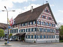 The village of Ermatingen is first mentioned in 724 as Erfmotingas.[3] It was part of the land owned by the monastery of Reichenau, and the abbot was the landlord, judge and appointed the priest for the village. The low court in the village was administered by a monastery appointed Meier. The position of Meier and the associated bailiwick were often used as security for a loan, for example in 1446 to the Lords of Klingenberg. In the 13th century and 1518 openings are occupied.