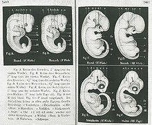 - ^ Richardson & Keuck 2001. See for example, their Fig. 7, showing His's drawing of the forelimb of a deer embryo developing a clef, compared with a similar drawing (Sakurai, 1906) showing the forelimb initially developing as a digital plate with rays. Richardson and Keuck say "Unfortunately His's embryos are mostly at later stages than the nearly identical early stage embryos illustrated by Haeckel [top row of Haeckel's drawing]. Thus they do not inform the debate and may themselves be disingenuous." p. 518.