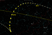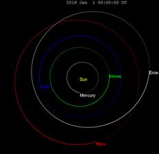 - ^ "AstDys (433) Eros Ephemerides for 2012". Department of Mathematics, University of Pisa, Italy. Retrieved 27 June 2010.