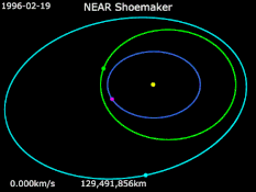 Animation of NEAR Shoemaker's trajectory around 433 Eros from 1 April 2000 to 12 February 2001.