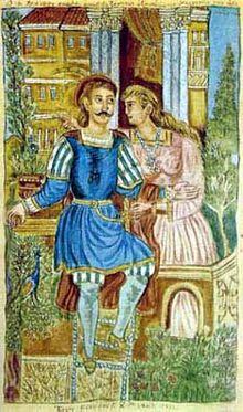 There are numerous adaptations and reworks of this play that there is speculation that other plays may be earlier versions of Erotokritos, such as an earlier work known as Thysia.[6] There are three literary issues surrounding Erotokritos. the most important, on which the others depend, is the issue of the poet's identity, as the name Vitsentzos Kornaros was widespread in Crete. The other two important problems are the issue of the dating of the work and the question of the speculated Italian model on which the poet was based. For the subject of the poet, it is accepted by most scholars to identify with Vikidzzo Kornaros of Jacob, brother of the Venetian author Andreas Kornaros.[5] Vicentzos, according to archival sources, was born in 1553 and died in 1613 or 1614. Based on this evidence, it is concluded that Erotokritos was written between 1590 and 1610. [10] On the Italian model on which Kornaros was based, the various adaptations of the French work stand out from the study of two, one of 1543, and one of Angelo Albani's diameters, entitled Innamoramento de due fidelissimi amanti Paris en Vienna, 1626. An examination of all Italian adaptations in relation to Erotokritus [5] has led to the conclusion that the earlier version was the one used by Kornaros, a point accepted by several philologists.[5] This view agrees with the poet's proposed identification