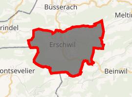 Erschwil has an area, as of 2009, of 7.43 square kilometers (2.87 sq mi). Of this area, 2.58 km2 (1.00 sq mi) or 34.7% is used for agricultural purposes, while 4.3 km2 (1.7 sq mi) or 57.9% is forested. Of the rest of the land, 0.53 km2 (0.20 sq mi) or 7.1% is settled (buildings or roads), 0.02 km2 (4.9 acres) or 0.3% is either rivers or lakes and 0.02 km2 (4.9 acres) or 0.3% is unproductive land.[4]