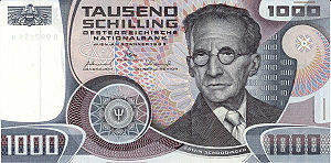 Schrödinger's portrait was the main feature of the design of the 1983–97 Austrian 1000-schilling banknote, the second-highest denomination.