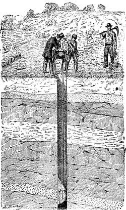 It consisted of a very powerful incandescent lamp enclosed in a metallic cylinder. One of the two semi-cylindrical sides constitutes the reflector, and the other, which is of thick glass, allows the passage of light, which illuminates the strata of earth traversed by the instrument. The base, which is inclined at an angle of 45°, is an elliptical mirror, and the top, of straight section, is open in order to permit the observer standing at the mouth of the well, and provided with a powerful spyglass, to see in the mirror the image of the earth. The lamp is so mounted that its upwardly emitted rays are intercepted.