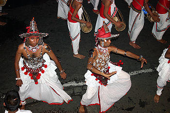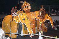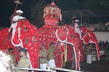The Kandy Esala Perahera (the Sri Dalada Perahara procession of Kandy) also known as The Festival of the Tooth is a festival held in July and August in Kandy, Sri Lanka. This historical procession is held annually to pay homage to the Sacred Tooth Relic of Buddha, which is housed at the Sri Dalada Maligawa in Kandy. A unique symbol of Sri Lanka, the procession consists of traditional local dances such as fire-dances, whip-danc garments. The festival ends with the traditional diya-kepeema ritual, a water cutting ceremony which is held at the Mahaweli River at Getambe, Kandy..