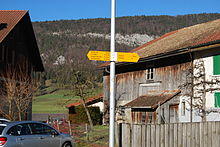 Eschert is a star shaped village on the southern side of the Grand Val (valley of Moutier). A portion of the village is along the Raus (Sous la Rive) on the border of Moutier.
