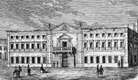 Thanks to the efforts of writer Almeida Garrett, the palace was replaced in 1842 by the Teatro Nacional D. Maria II, built to a Neoclassical design by Italian architect Fortunato Lodi. The theatre stands today on the site of the old Estaus Palace. A statue of Renaissance Portuguese playwright Gil Vicente is located over the pediment of the theatre. Ironically, some of Gil Vicente's plays had been censured by the Inquisition in the late 16th century.