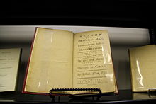 Allen met Thomas Young when he moved to Salisbury, a doctor living and practicing just across the provincial boundary in New York. Young taught him a great deal about philosophy and political theory, while Allen shared his appreciation of nature and life on the frontier with Young. They eventually decided to collaborate on a book intended as an attack on organized religion, as Young had convinced Allen to become a Deist. They worked on the manuscript until 1764, when Young moved away from the area taking the manuscript with him.[20] Allen recovered the manuscript many years later, after Young's death. He expanded and reworked the material, and eventually published it as Reason: the Only Oracle of Man.[21]