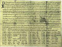 Æthelred's government produced extensive legislation, which he "ruthlessly enforced".[28] Records of at least six legal codes survive from his reign, covering a range of topics.[29] Notably, one of the members of his council (known as the Witan) was Wulfstan II, Archbishop of York, a well-known homilist. The three latest codes from Æthelred's reign seemed to have been drafted by Wulfstan.[30] These codes are extensively concerned with ecclesiastical affairs. They also exhibit the characteristics of Wulfstan's highly rhetorical style. Wulfstan went on to draft codes for King Cnut, and recycled there many of the laws which were used in Æthelred's codes.[31]