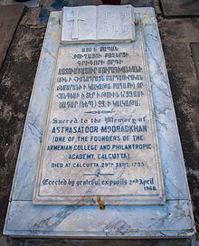 Among notable Armenians, Sir Apcar Alexander Apcar, a prominent businessman, was the head of the Bengal Chamber of Commerce and Industry. The size of the Armenian community can be testified by the five Armenian cemeteries in Kolkata, including the one adjunct to the Chapel of Holy Trinity in Tangra and an Armenian church. A gift of Rs. 8000 by Asvatoor Mooradkhan helped found the Armenian College in 1821. Armenian College has been instrumental in pioneering the game of rugby on the Maidan turf.