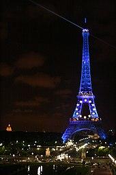 - ^ (in French) Guide graphique relatif à l'emblème européen (1996), p. 3: Description symbolique: Sur le fond bleu du ciel, les étoiles figurant les peuples d'Europe forment un cercle en signe d'union. Elles sont au nombre invariable de douze, symbole de la perfection et de la plénitude...Description héraldique: Sur fond azur, un cercle composé de douze étoiles d'or à cinq rais, dont les pointes ne se touchent pas. c.f. "Graphical specifications for the European Emblem". European Commission. Archived from the original on 22 June 2006. Retrieved 4 August 2004.