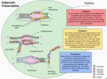 Eukaryotic transcription proceeds in three sequential stages: initiation, elongation, and termination.[1]